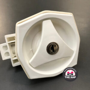 Dit drukknop slot, ook wel push lock genoemd wordt vaak toegepast in lades vanwege de kleine afmeting. Aan de metalen pin wordt de knop gedraaid.
