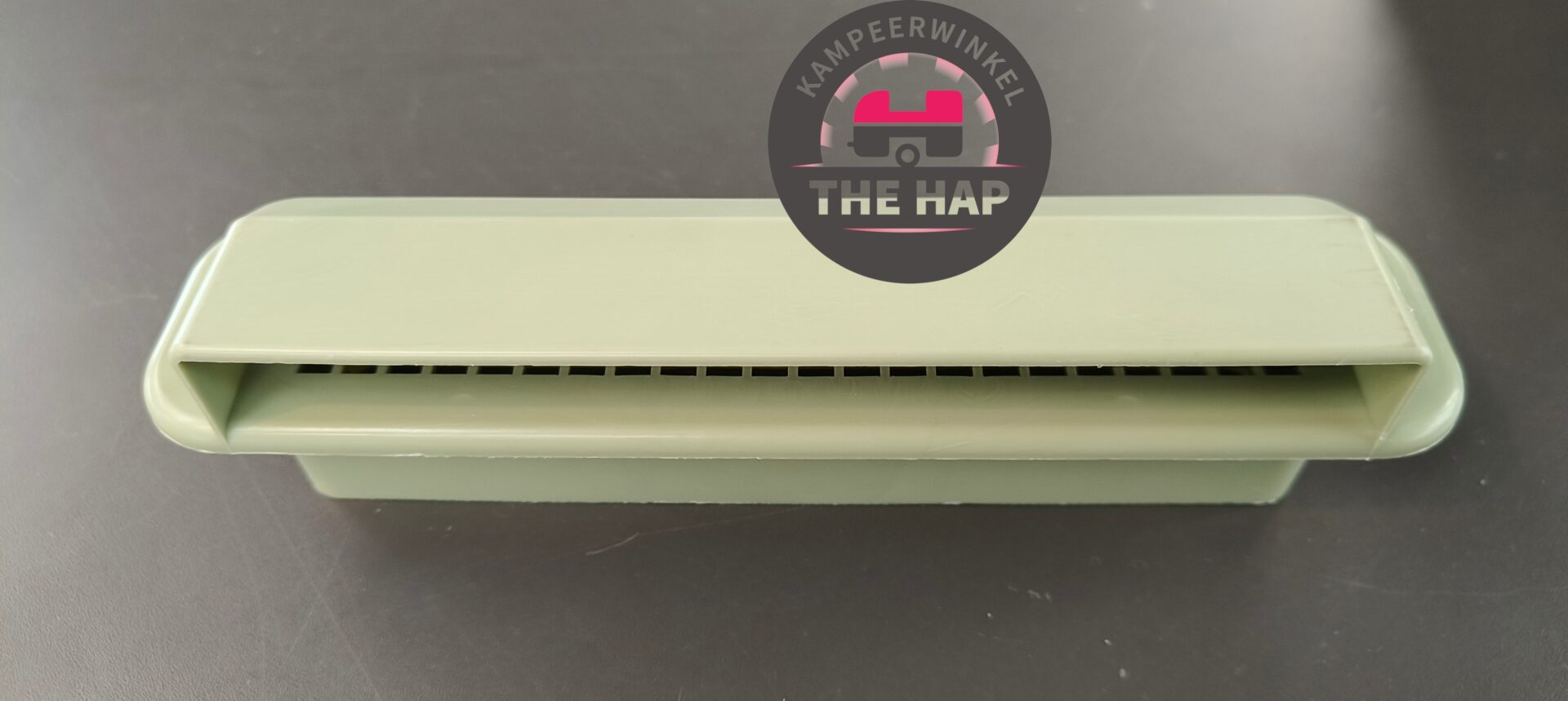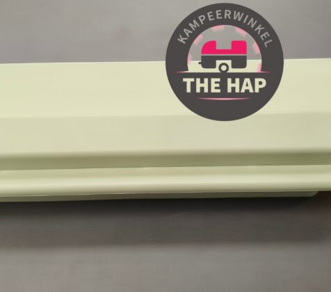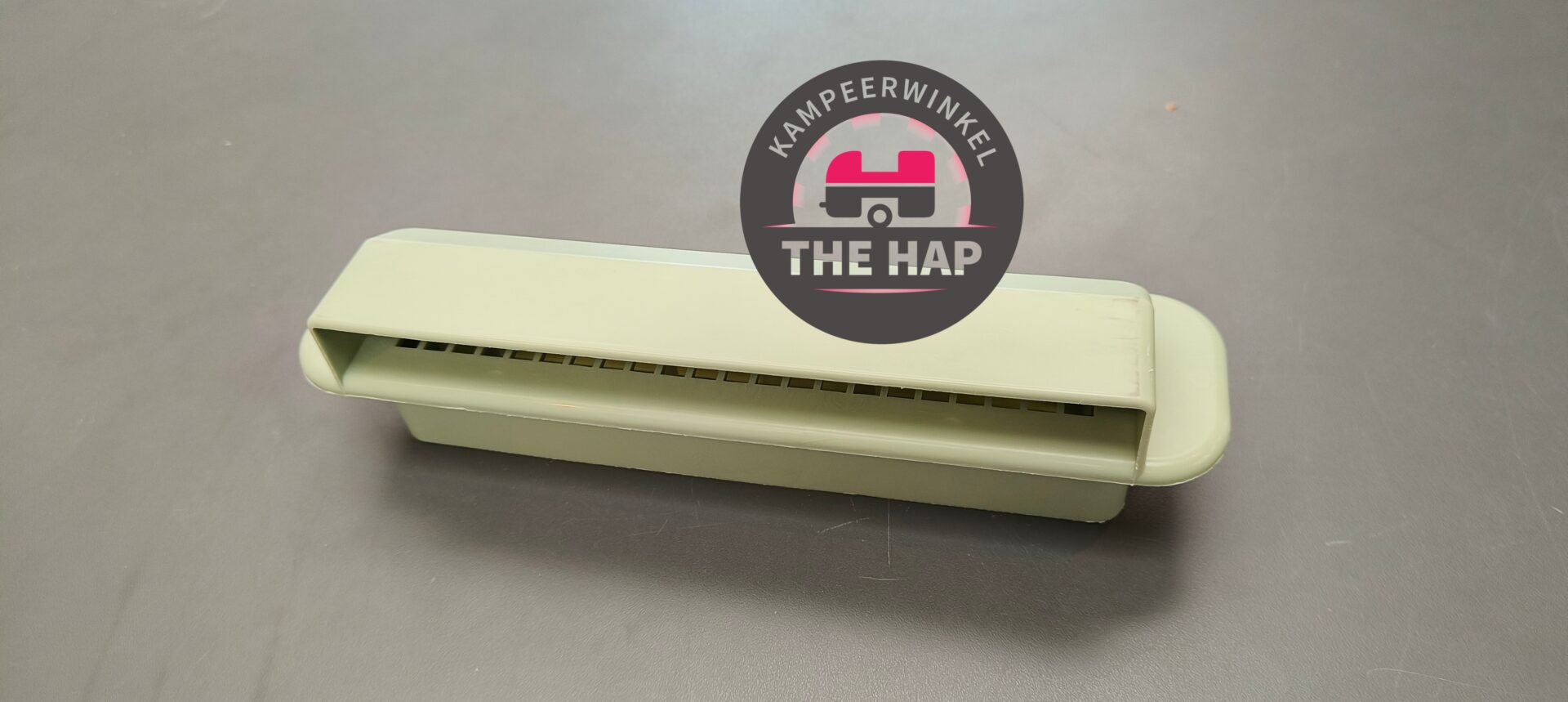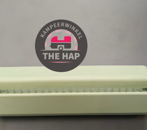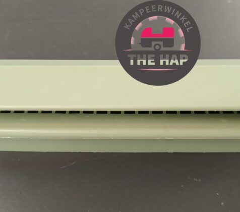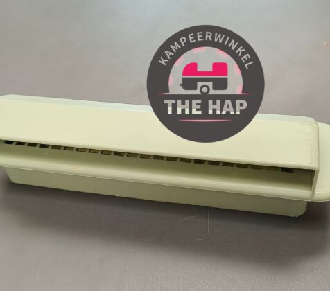 Dit rooster zit aan de buitenzijde gemonteerd met een afwerkrooster aan de binnenzijde van de stacaravan.