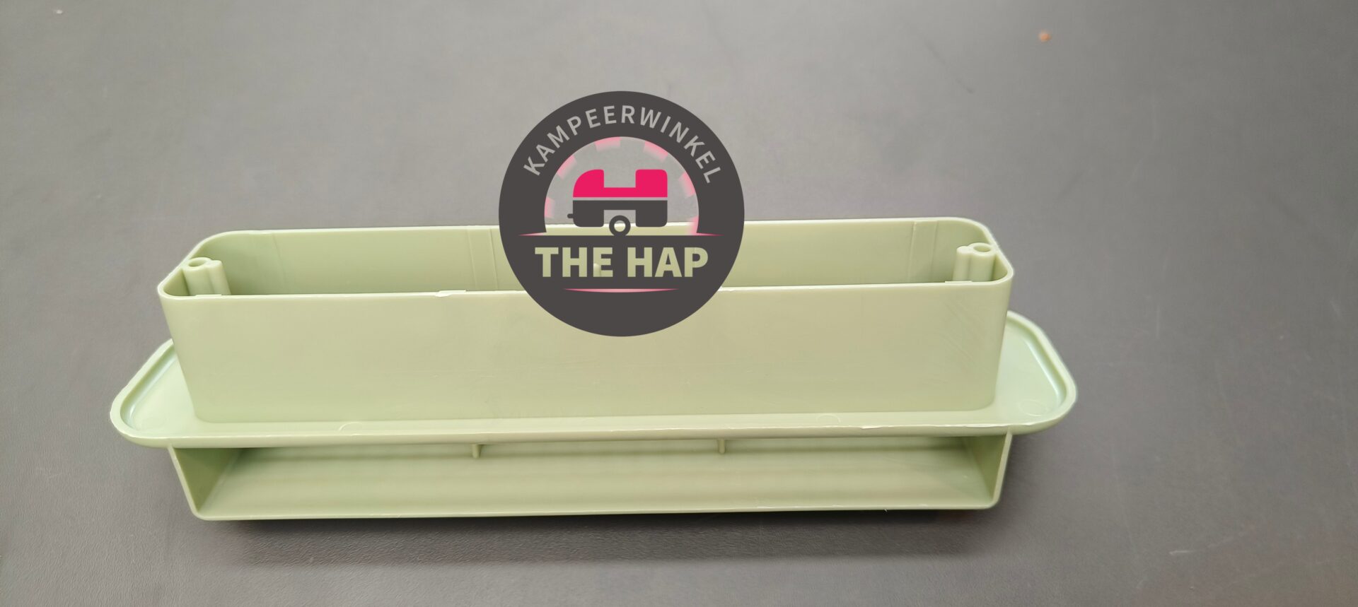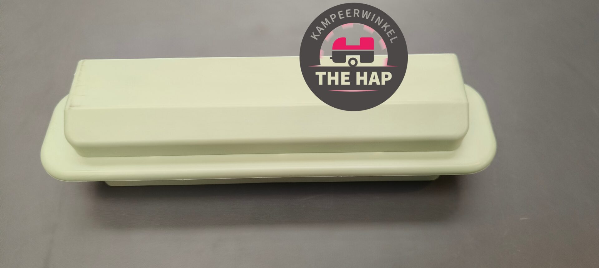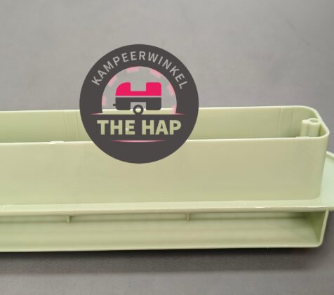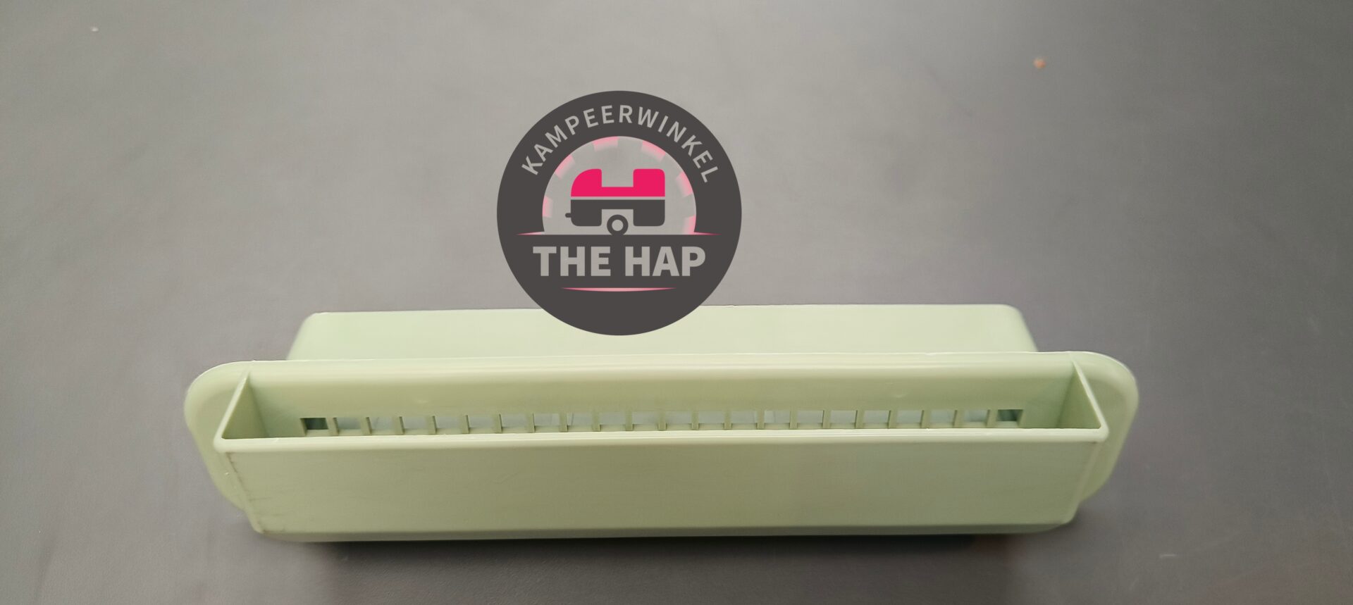 Dit rooster zit aan de buitenzijde gemonteerd met een afwerkrooster aan de binnenzijde van de stacaravan.
