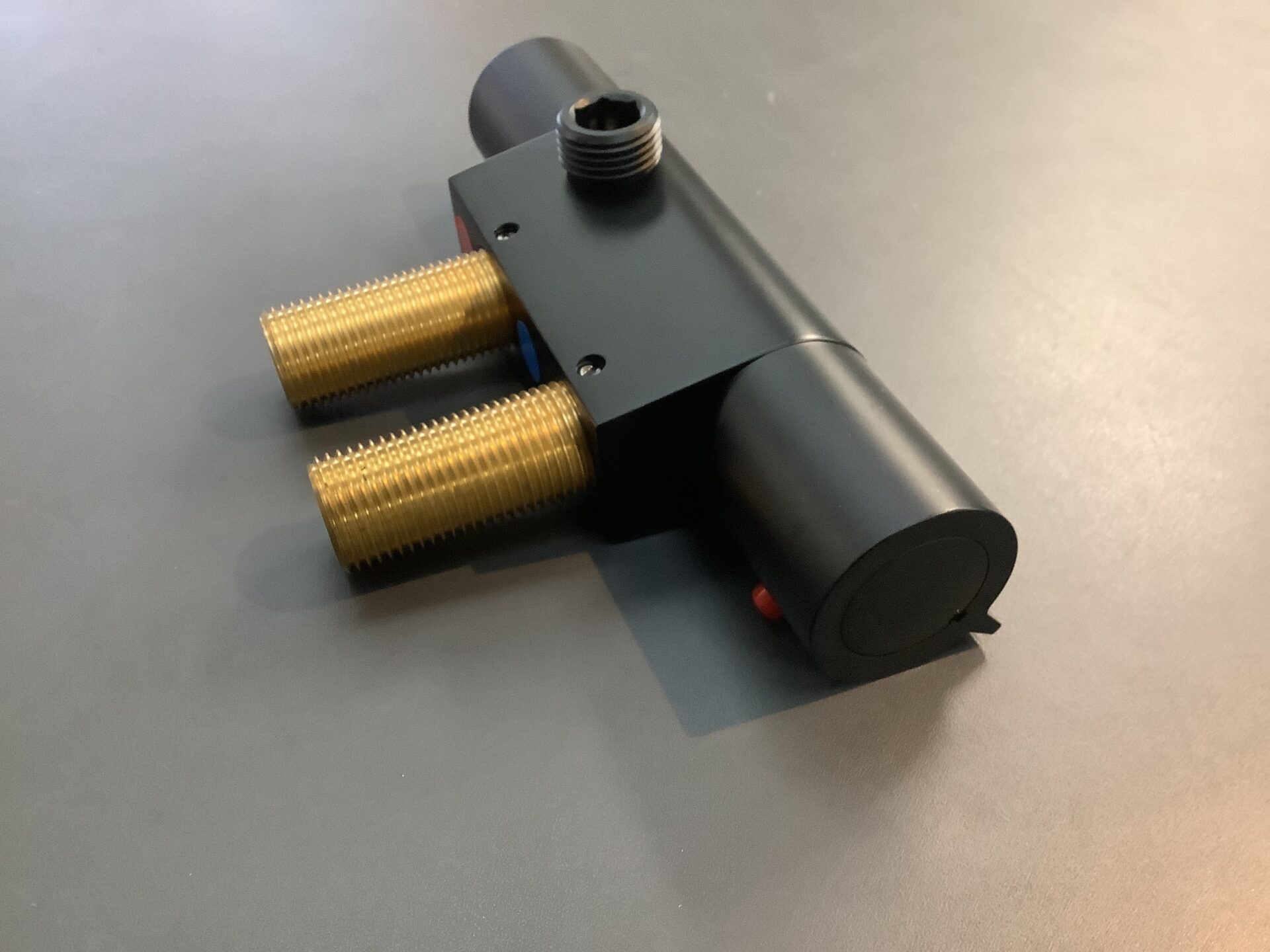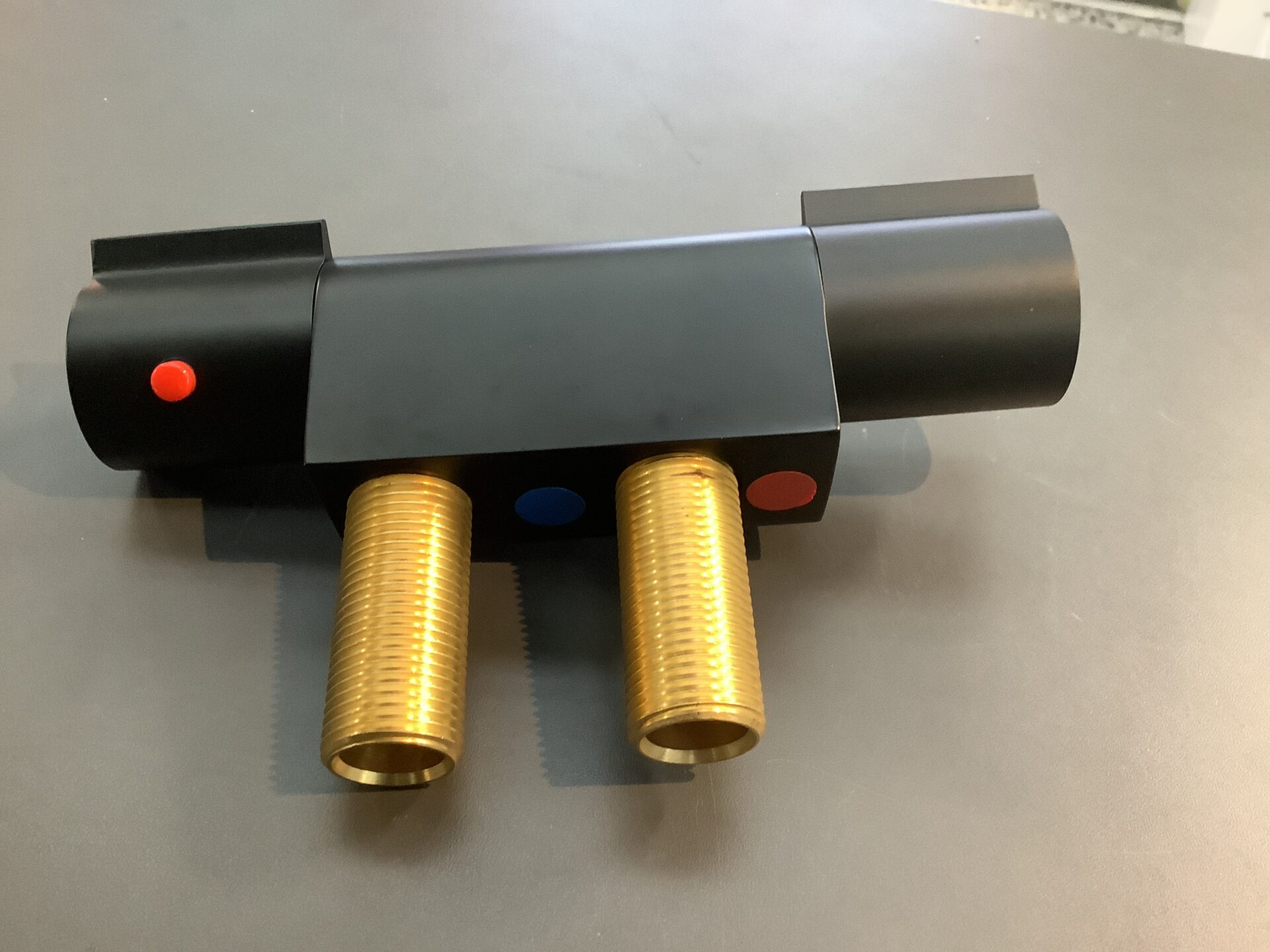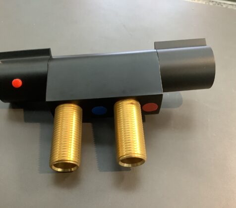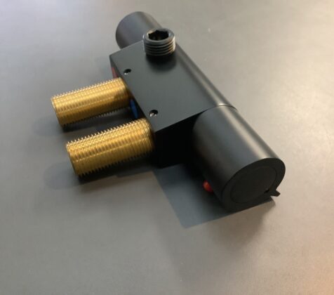 Deze thermostaat mengkraan wordt horizontaal gemonteerd en is 45 mm
